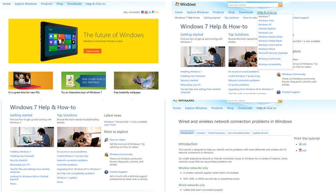 Back in the day, we shipped Help content “on the box” (get off my lawn!), so moving to the web with Windows 7 was an exciting step. We covered a lot of ground, wrote a lot of words, reached a massive audience, and wrote a lot of words.
