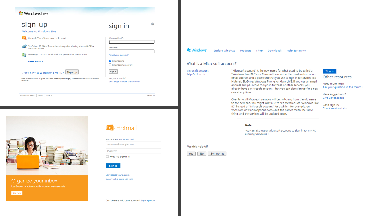 Windows Live (Hotmail, OneDrive, etc., in previous iterations)