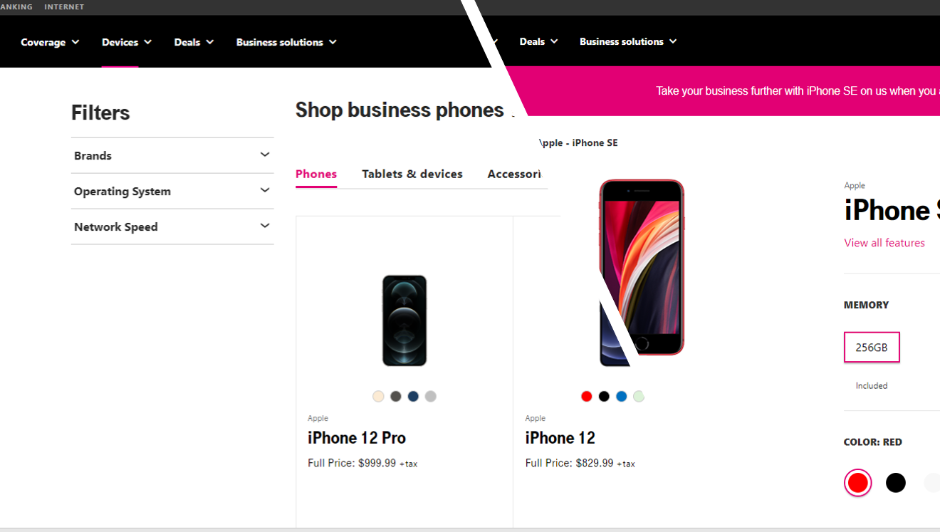 While I’ve focused the bulk of my career predominantly in the consumer-facing content design space, I’ve had the fortunate opportunity to spend the last stretch focusing on B2B, building a net new eCommerce experience for T-mobile for Business prospect customers. It’s a small, scrappy team, so I get to wear a lot of hats, including owning all business, user experience, and merchandising requirements.